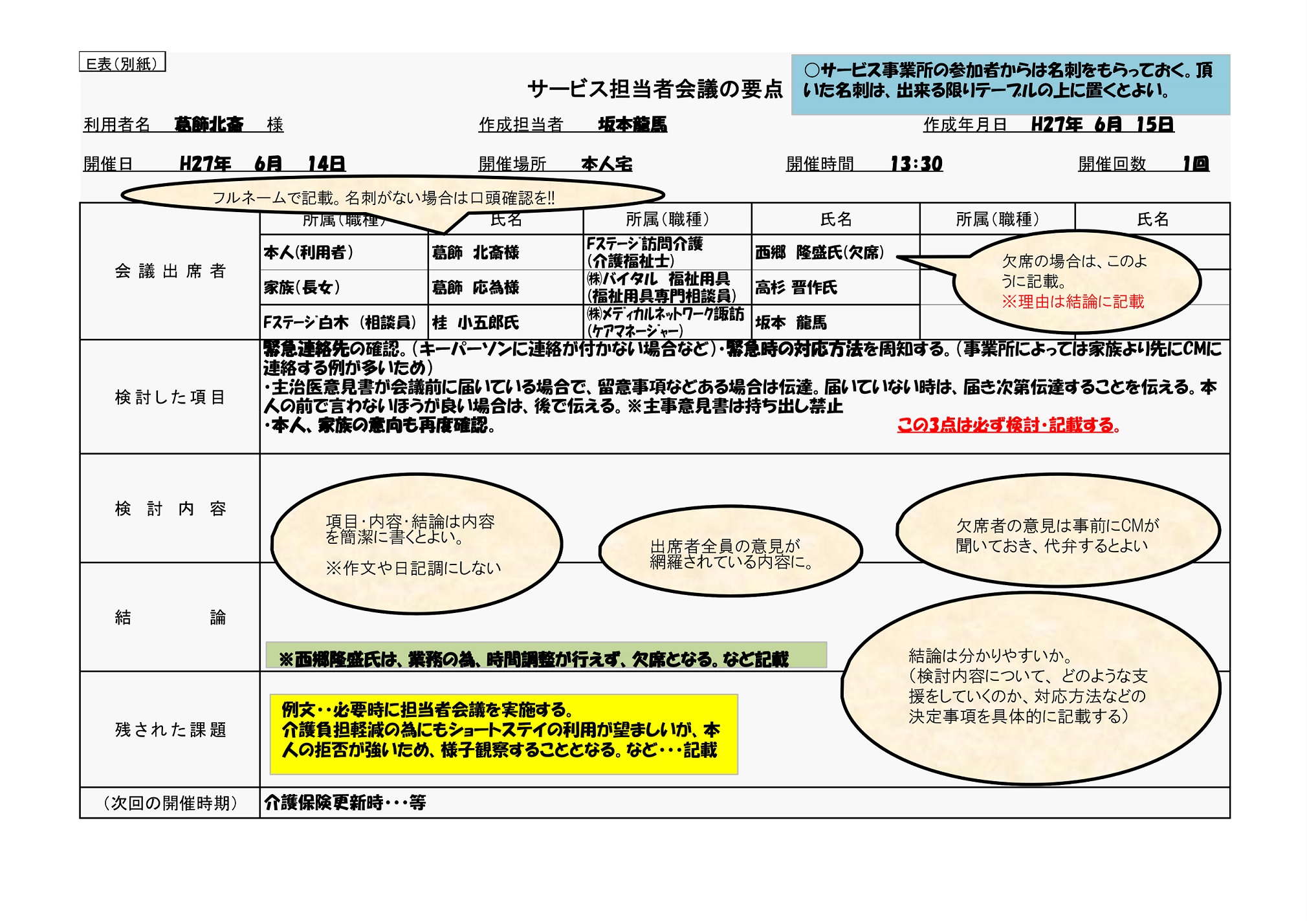 もう悩まない!サービス担当者会議の要点、記入例とポイント ケアマネ必見 介護のお仕事研究所。