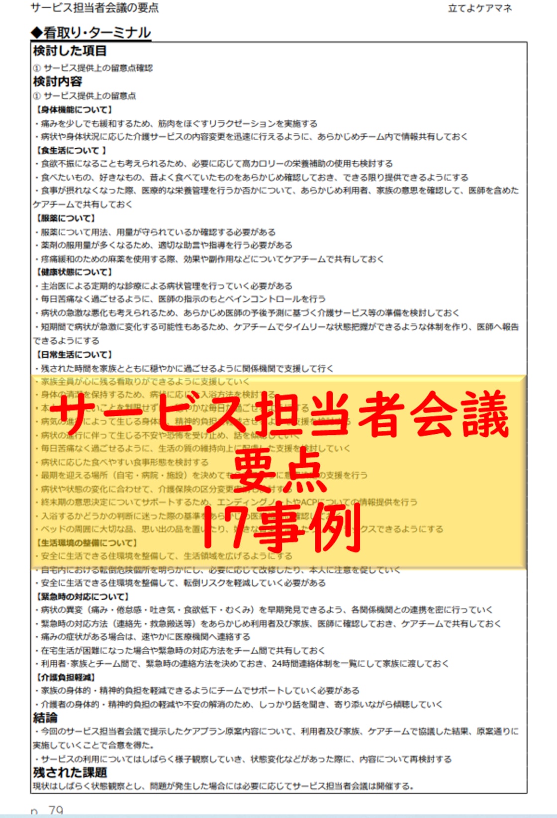 記入例 サービス担当者会議の要点 第4表 40事例立てよケアマネ 記入例・文例・文言フリ。