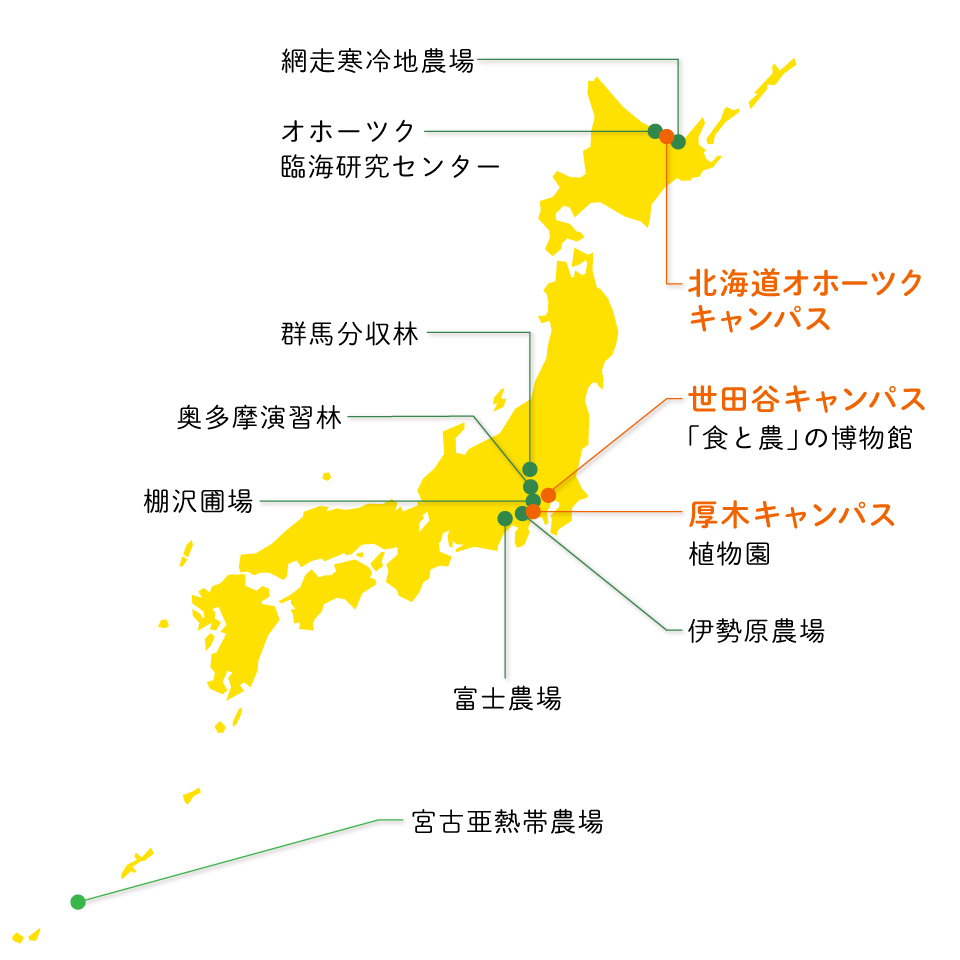 農場・植物園・演習林・学部研究センター東京農業大学。