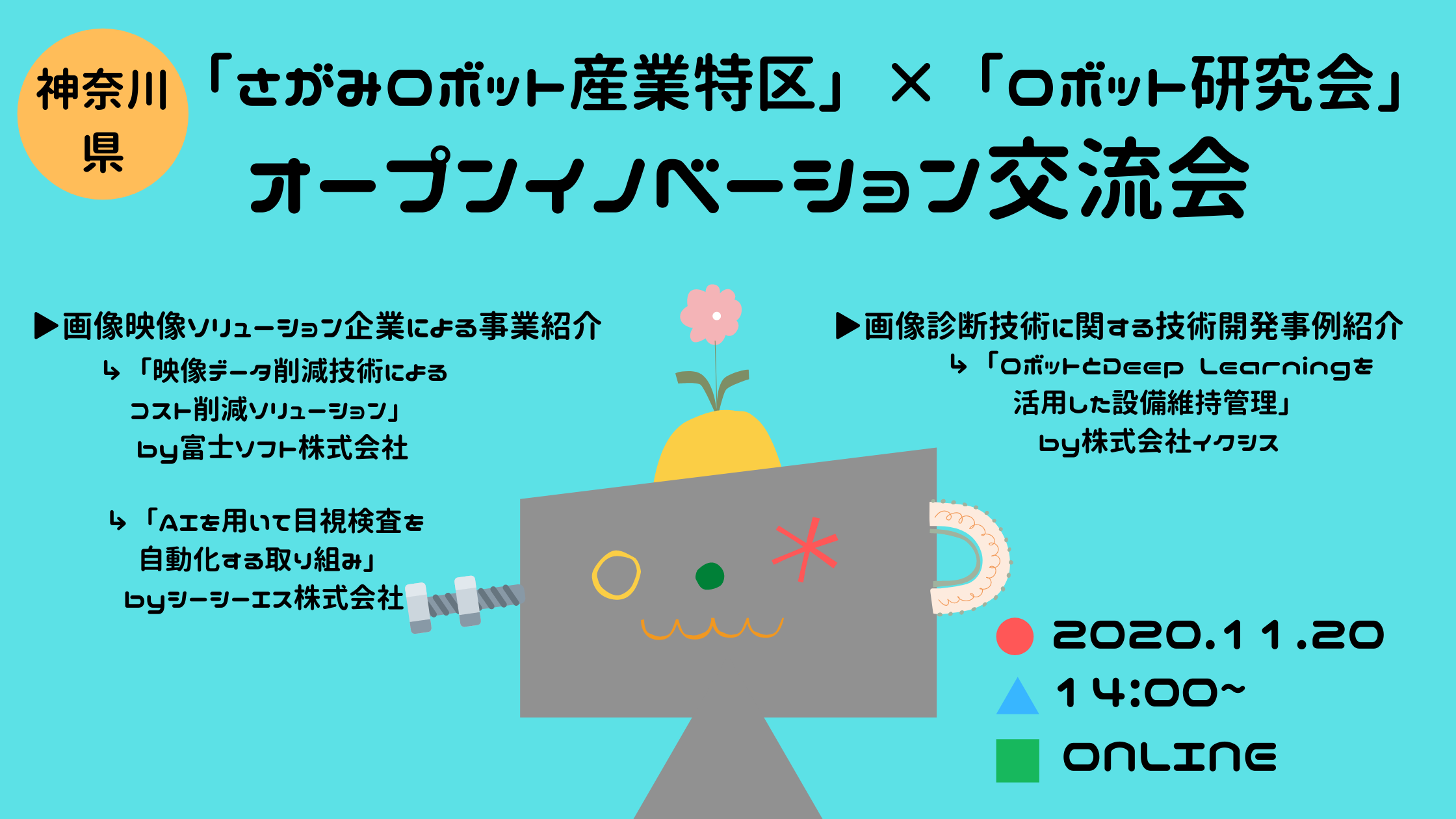 オンライン 神奈川県「さがみロボット産業特区」×「ロボット研究会」『オープンイノベーション交流会』K-NIC。