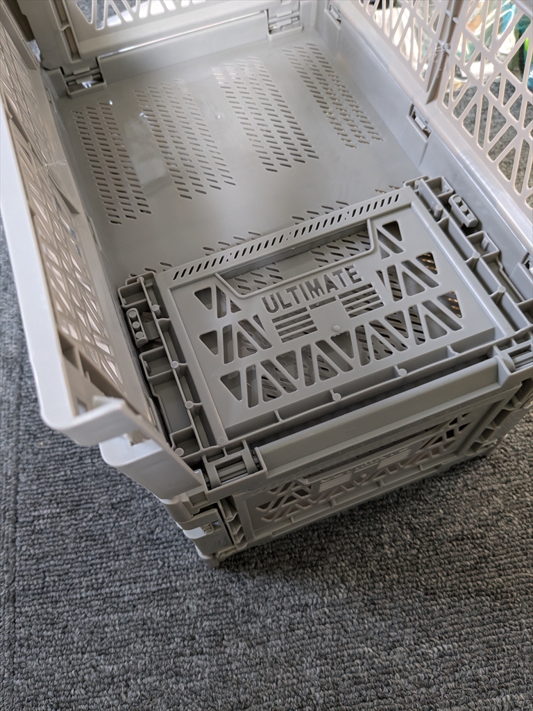 ダイソー「アルティメットコンテナ」折りたたみできる330円コンテナで段ボールとサヨナラ!暮らしのちいさな発見帳。