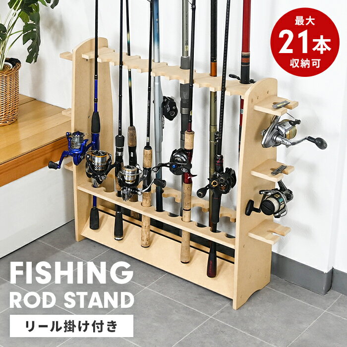 MASTLU ロッドスタンド 釣り竿ラック ロッドホルダー 10本立て 釣り用ロッドスタンド 木製 釣竿収納。