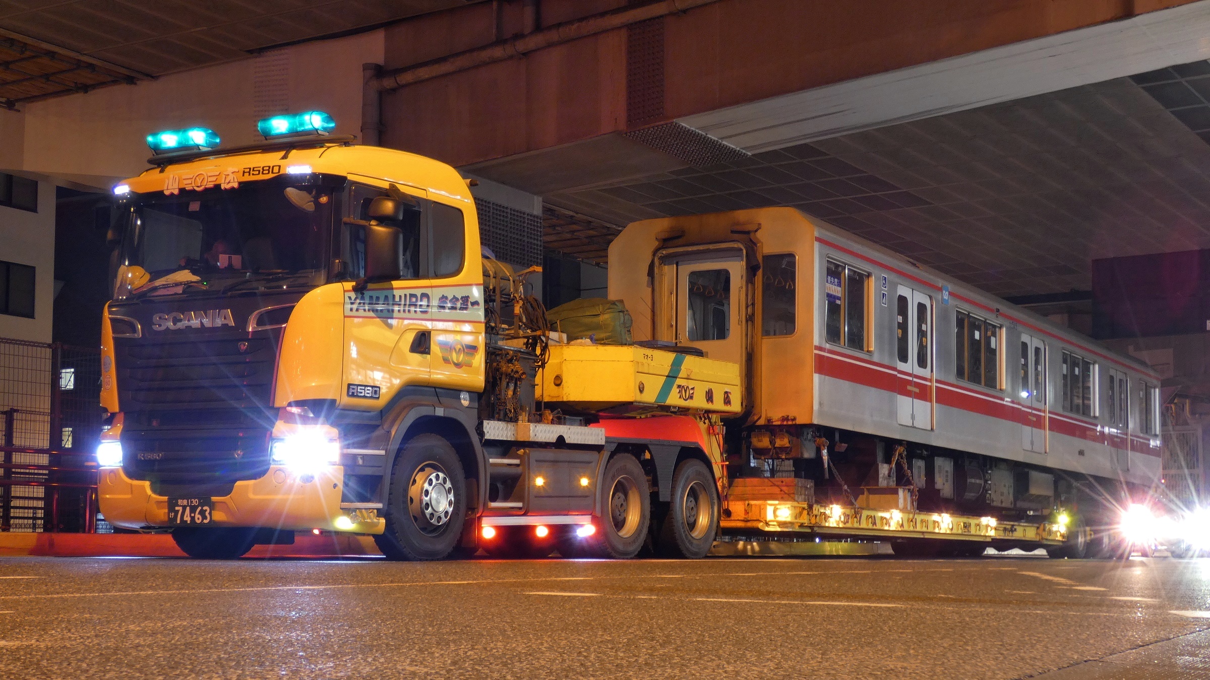 約27年半前にサリンが撒かれた車両。 02-150F 中間車両 5号車廃車陸送 02-550号が山広運輸のSCANIAトラックに載せられて新宿大ガード西を通過するシーン 2022.10.15深夜- YouTube。