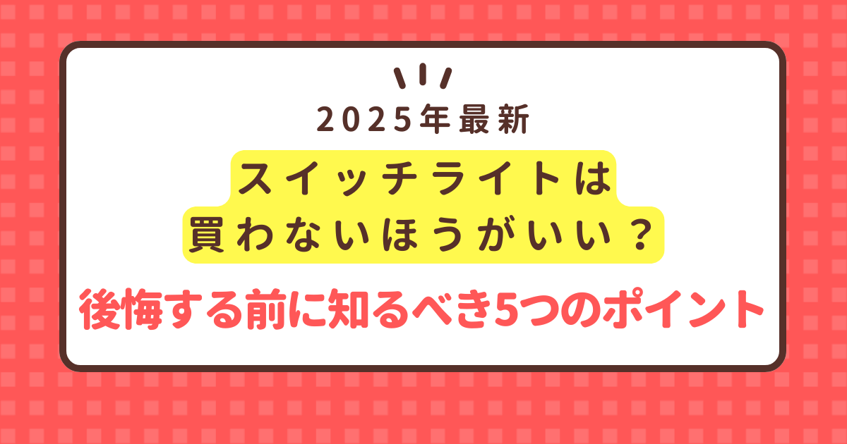 2025年最新 スイッチライトは買わないほうがいい?後悔する前に知るべき5つのポイントゲーム買取ラボ。