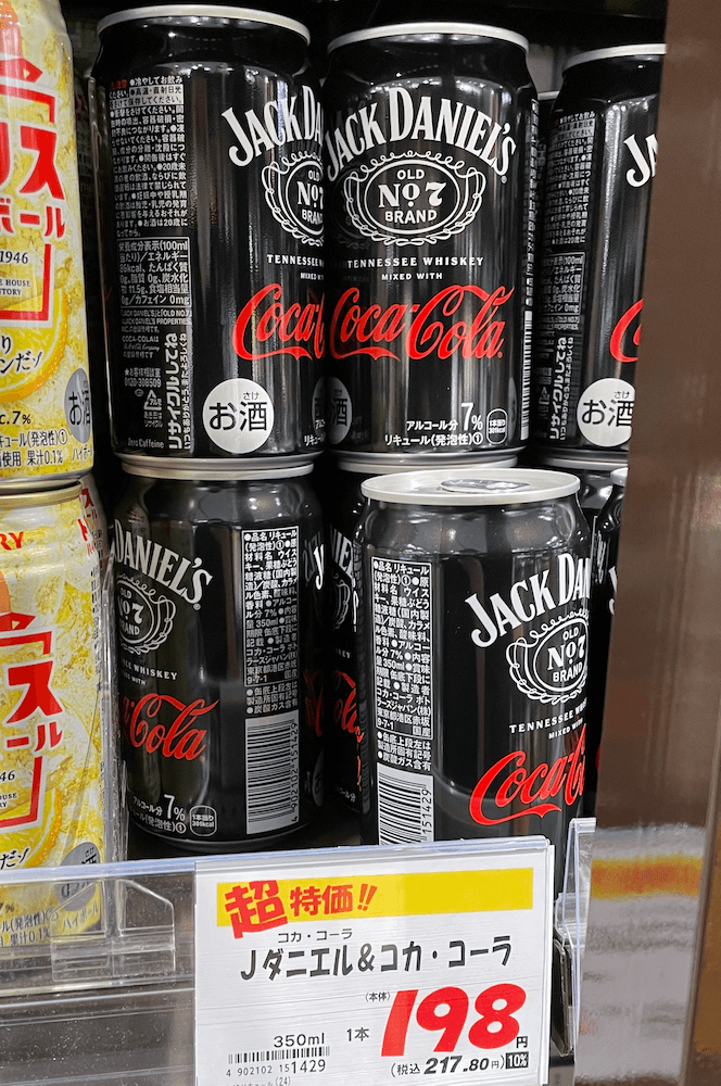 キケン? ジャックダニエル&コカ・コーラ<おすすめ度星2>コカ・コーラシステム缶チューハイ。