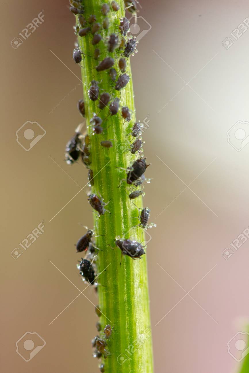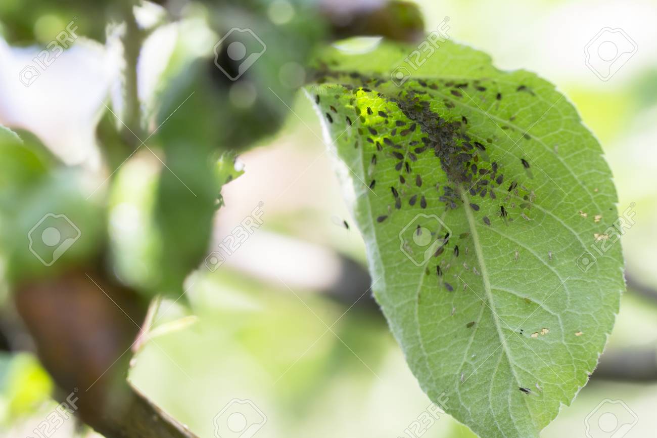 リンゴの木の枝の上の害虫、アブラムシ。昆虫は植物のジュースを供給し、葉を破壊し、病気を広げ、収穫を減らす。の写真素材・画像素材 Image127294116。