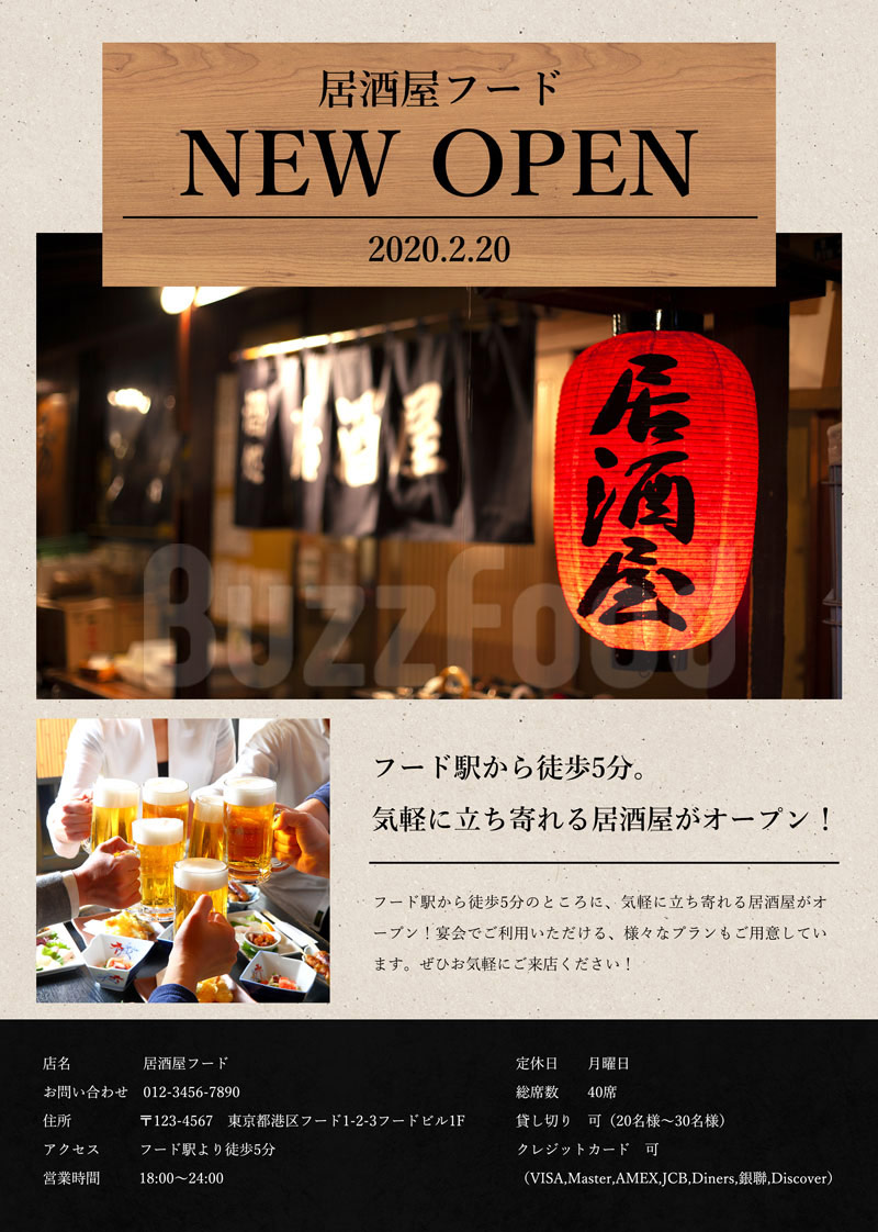 居酒屋_開業・オープンチラシ・フライヤーの無料デザインテンプレート - ネット印刷グラフィック。