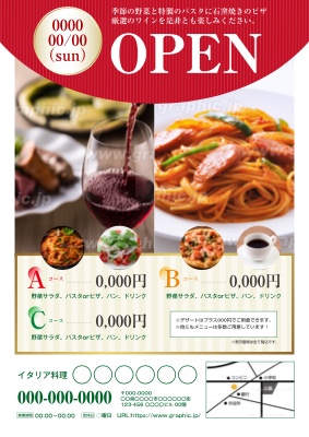 飲食店のチラシ無料テンプレート・デザインサンプルオープン・開店 - ネット印刷グラフィック。