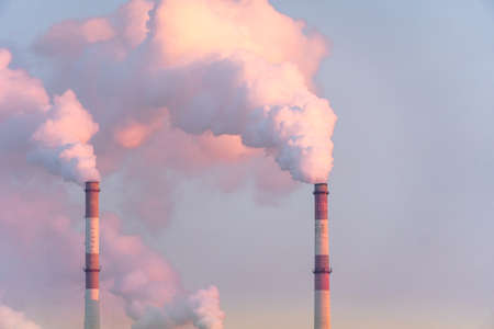 産業工場の汚染、煙突の排気ガス。工業地帯、濃い煙。気候変動と気候変動。縦の写真の写真素材・画像素材 Image 165577796。