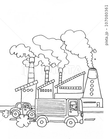 工場や車の排気ガスによる大気汚染のイメージイラストのイラスト素材107080363- PIXTA。