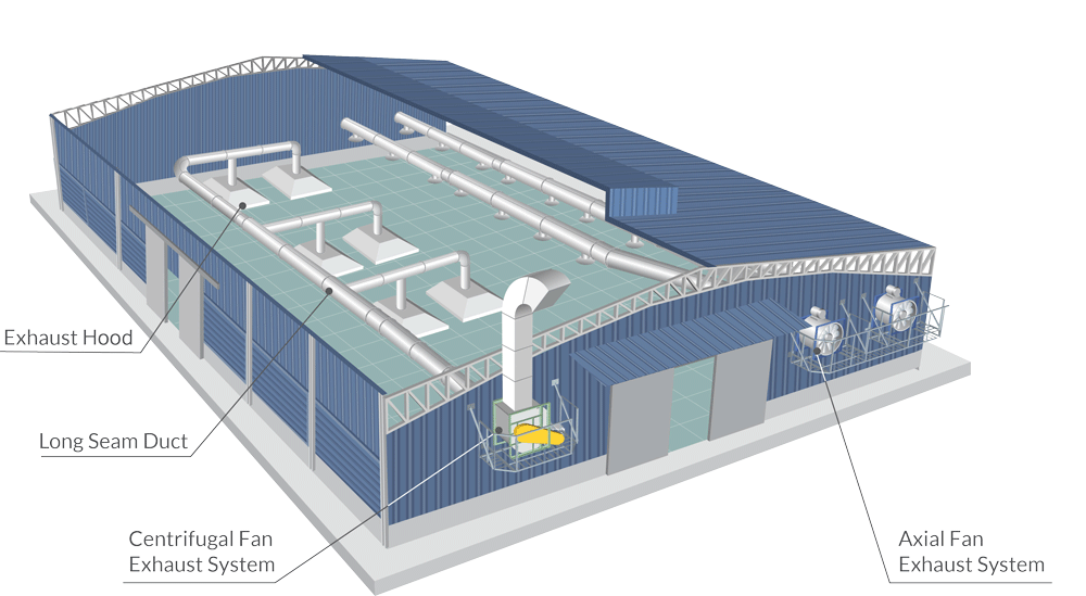 工場排気システム - 熱と汚染物質を作業スペースから除去。