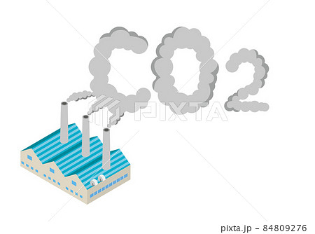 工場の排気ガスとCO2の文字イラストのイラスト素材84809276- PIXTA。