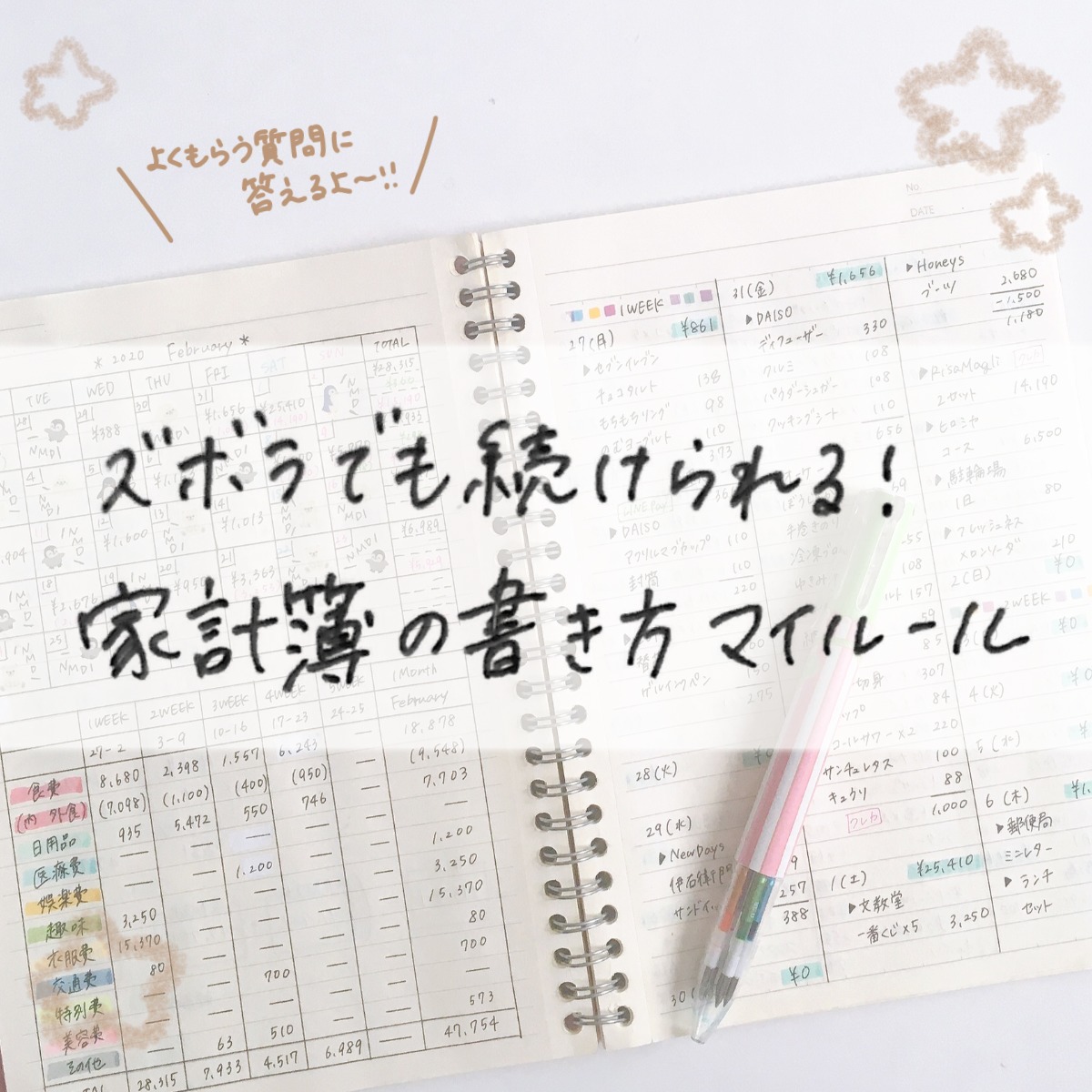 マーカーで家計簿を手書き!綺麗な字のノート術とノートデコ法。