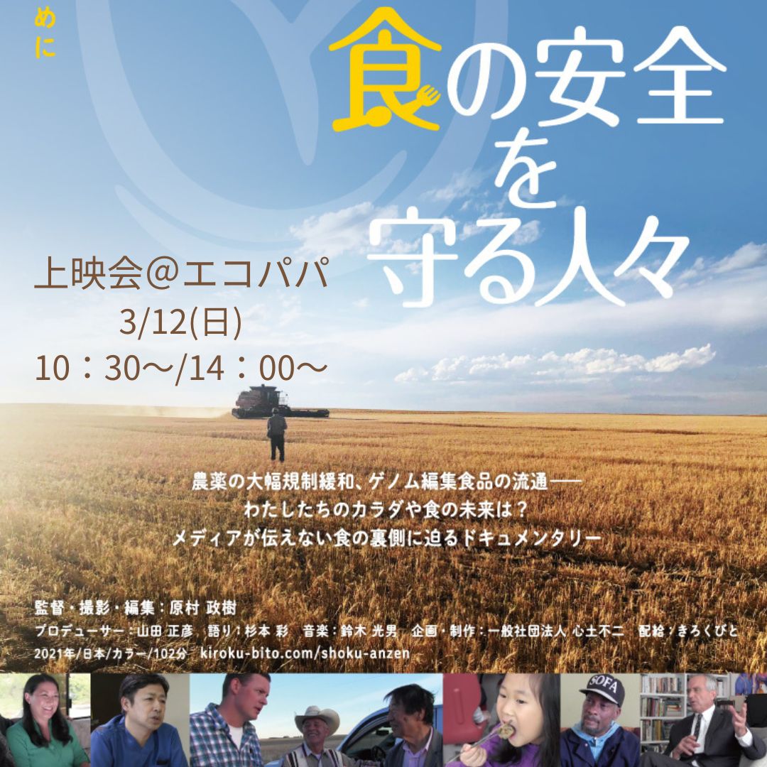 3 12 日 上映会『食の安全を守る人々』エコストア パパラギ。