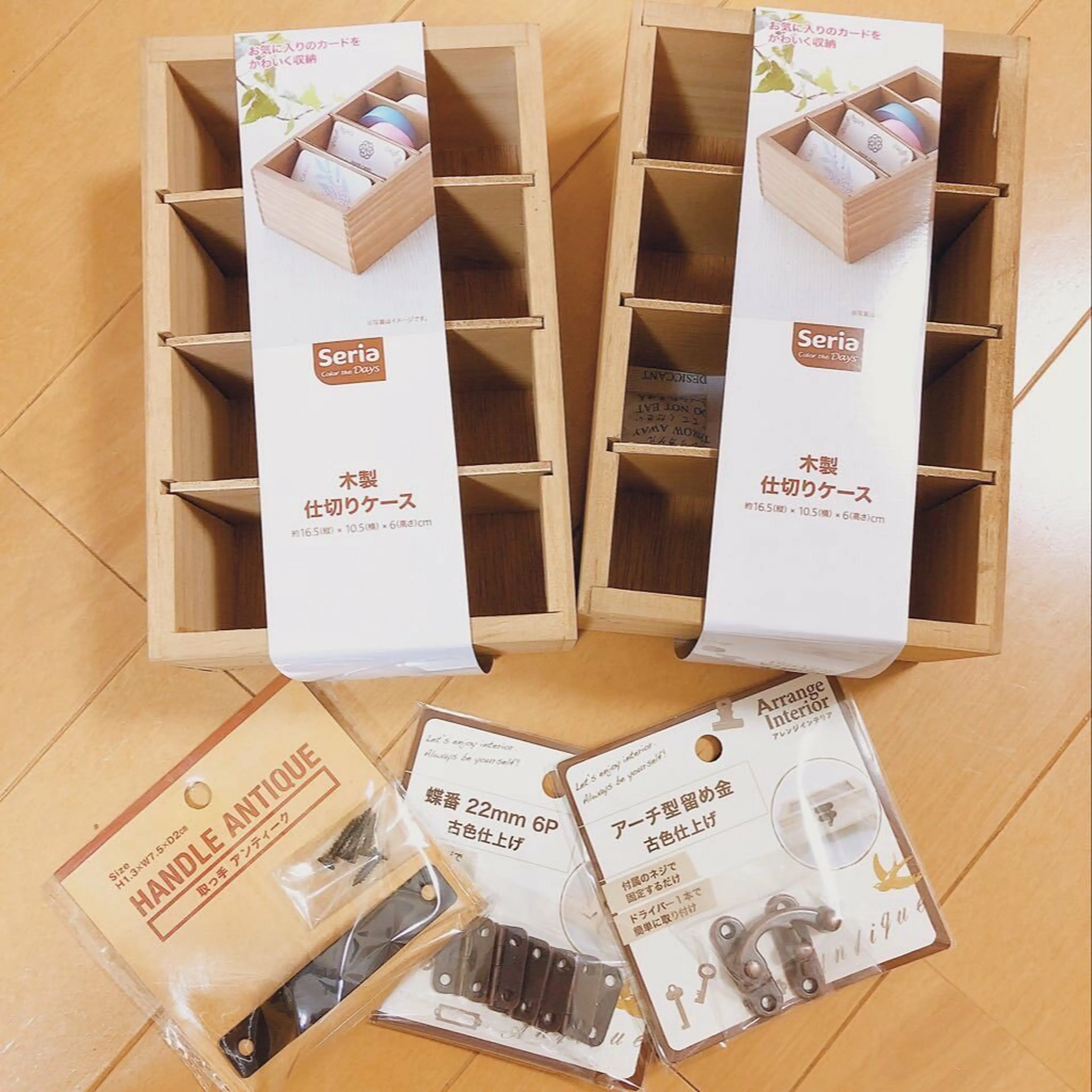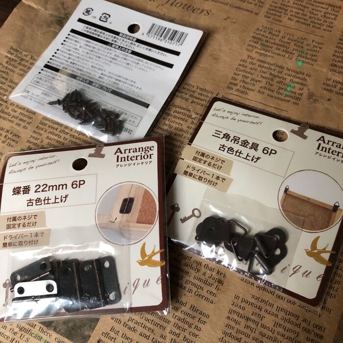 セリア ハンドル 取っ手 蝶番 三角吊り金具まとめ売り カルトナージュ。