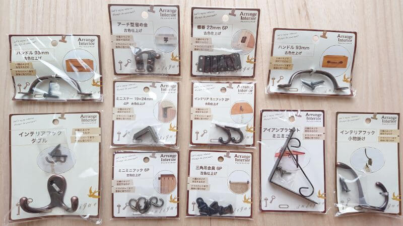 100均 セリア「金具」の種類とDIYアイデアを紹介します。古色仕上げ中心編rooms19。