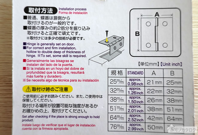 100均で売られていた蝶番の商品一覧・サイズ。ダイソーとセリアで100円。
