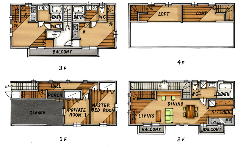 賃貸併用住宅の間取り!2階建ての1LDK×4部屋の家元ハウスメーカー、今不動産特化FPカルタのマイホームのイロハ。