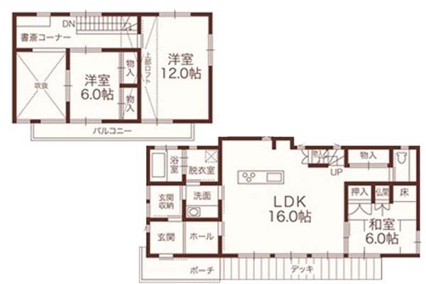 間取り1002階建 50?60坪 北玄関プラン注文住宅の一戸建て 楽住-rakunism。