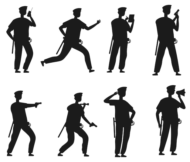 警官, アメリカの警官, 警備員, ベクトル, シルエットPremiumベクトル素材。