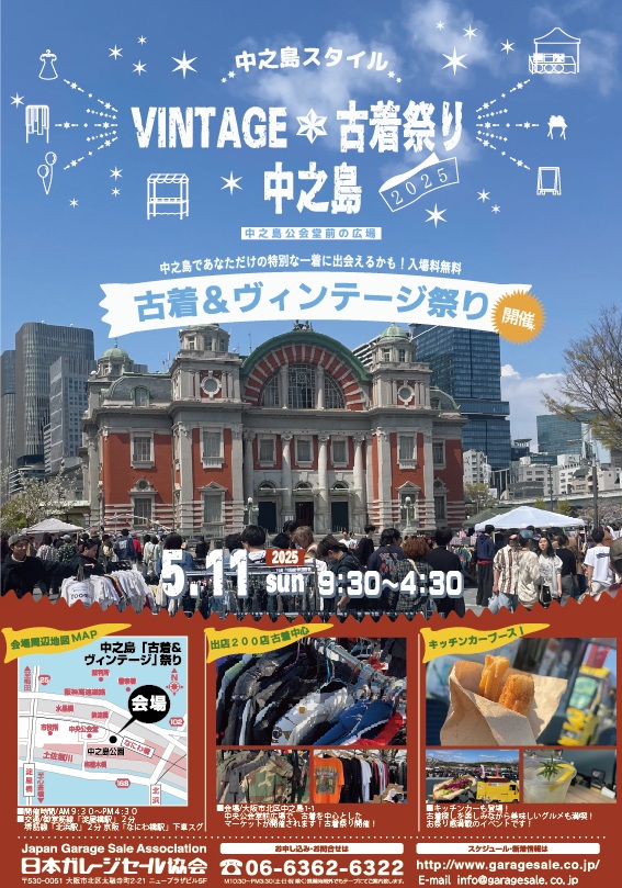 日本ガレージセール協会 on X: "📍5月11日 日 開催 中之島で 200ブース の出店! 「古着&ヴィンテージ」祭り🔥 開催地:大阪・中之島中央公会堂前広場 9:30~16:30 入場無料!アクセス:なにわ橋北浜淀屋橋 どこからでも行きやすい!☔️小雨決行! HP。