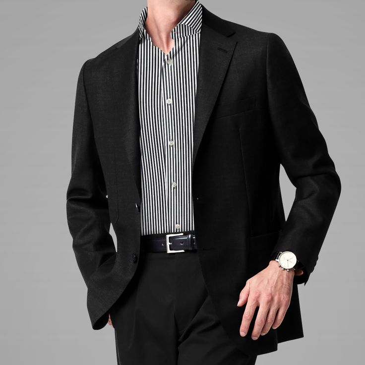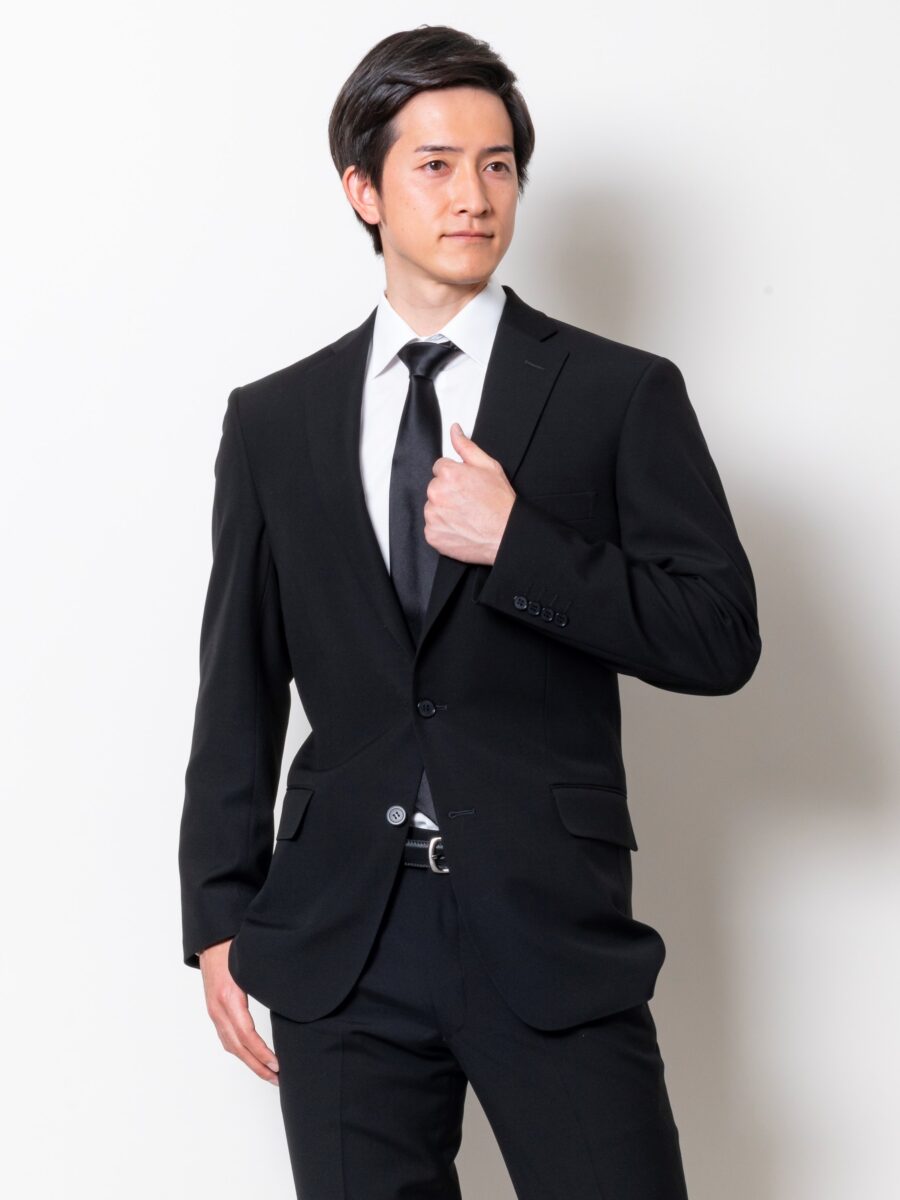 ブラックを最大限活かしたノーネクタイ、モノトーンスタイルオーダースーツのFABRIC TOKYO。