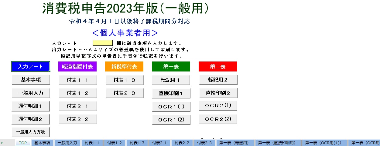 一般課税用確定申告書 提出用 がExcel エクセル で作成出来ます。: 税金計算に役立つ無料フリーソフト。