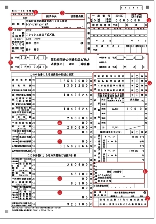消費税申告書 第27の 1 号様式 サンプルイメージ。