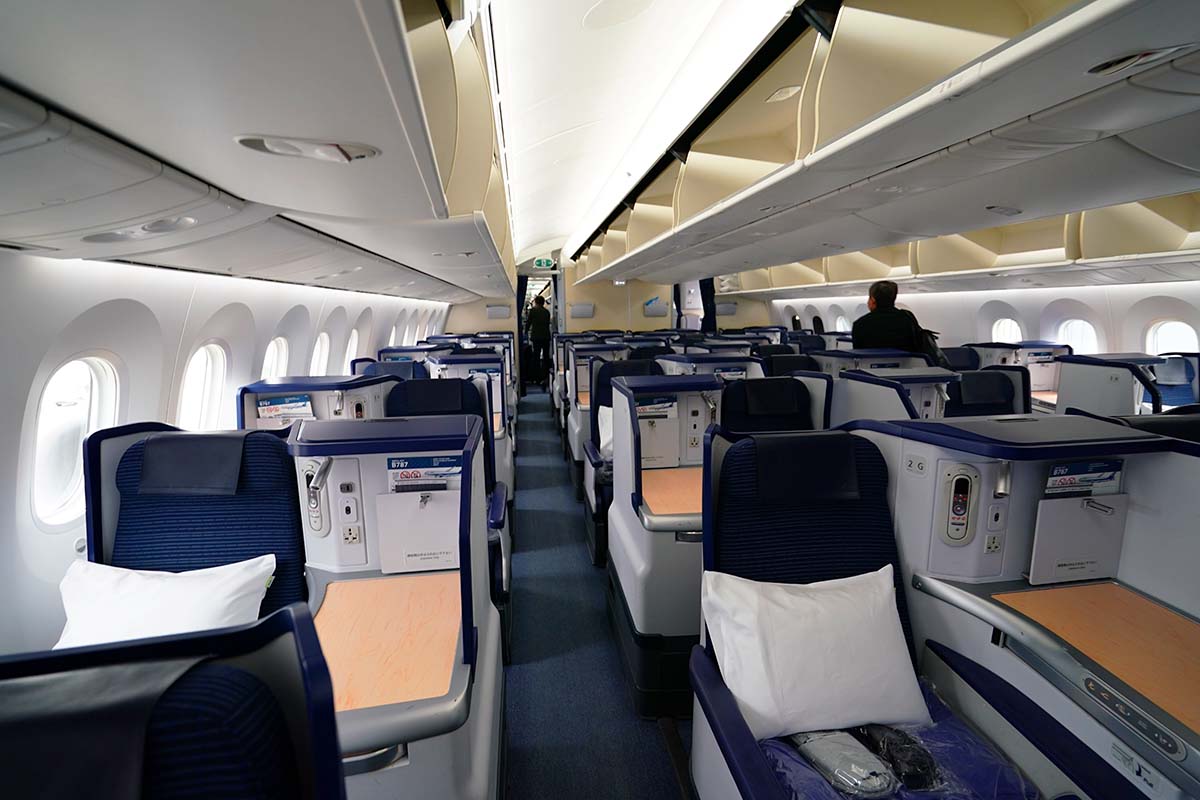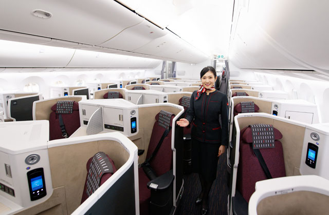 足もと立体交差のビジネスクラス 写真特集・JAL 11代目CA新制服と主要機材 4 787-9 E91編。