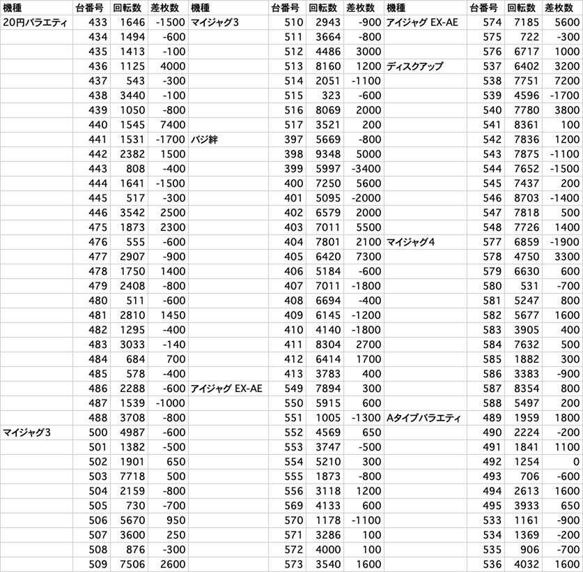 2023 8 8 火デルーサマックス西成本店スロット差枚データ詳細 – みんレポ。