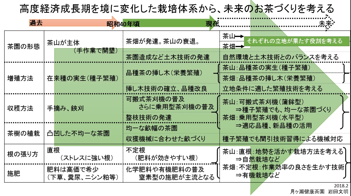 高度経済成長期を境に変化した栽培体系から、奈良・月ヶ瀬での未来のお茶づくりを考える : 文明語る月ヶ瀬健康茶園。