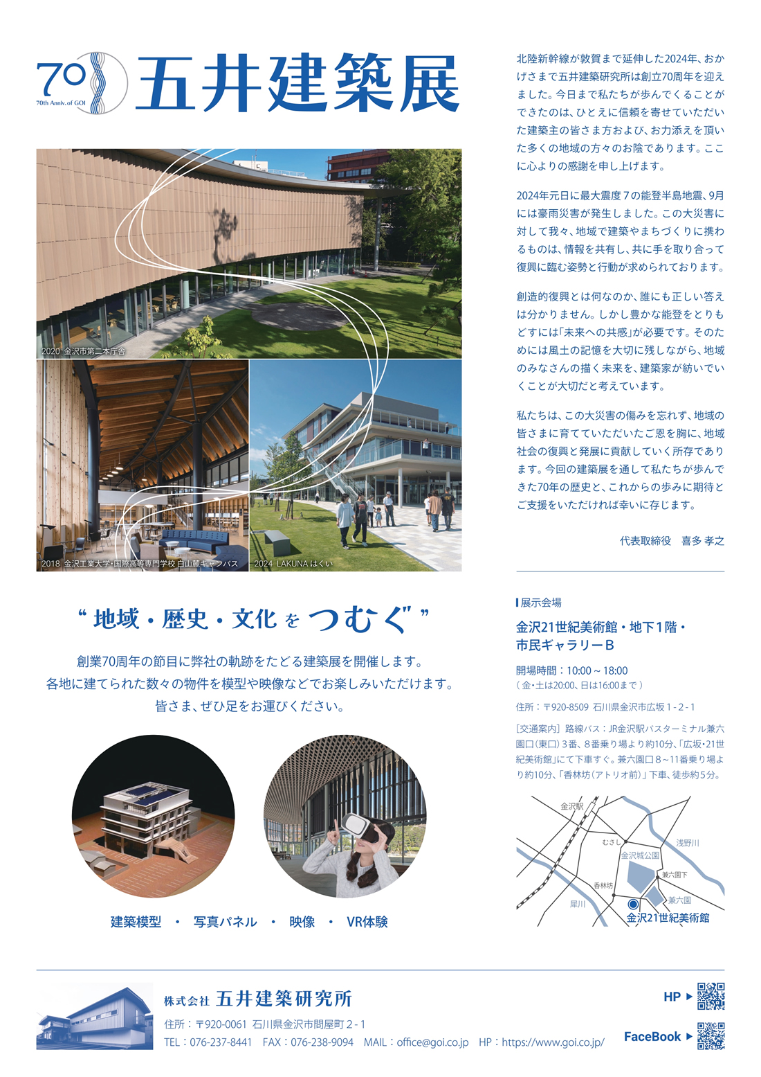 70周年記念五井建築展のご案内石川県建築士事務所協会。
