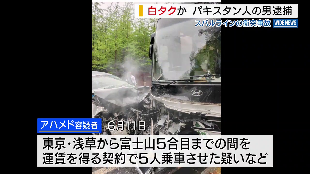 白タクか パキスタン人の男逮捕 富士スバルラインの衝突事故 外国人観光客5人を乗車させた疑い 山梨 2025年9月2日掲載 YBS NEWS NNN。