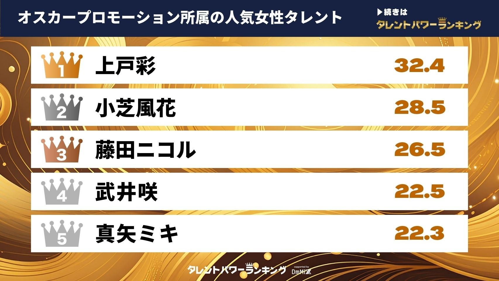 タレントパワーランキング』がオスカープロモーションに所属する女性タレントランキングを発表!WEBサイト『タレントパワーランキング』ランキング企画第348弾!!株式会社アーキテクトのプレスリリース。