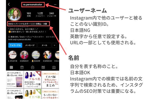 インスタグラムのユーザーネームと名前の違いは?変更方法は?詳しく解説! -公式 トリドリマーケティング。