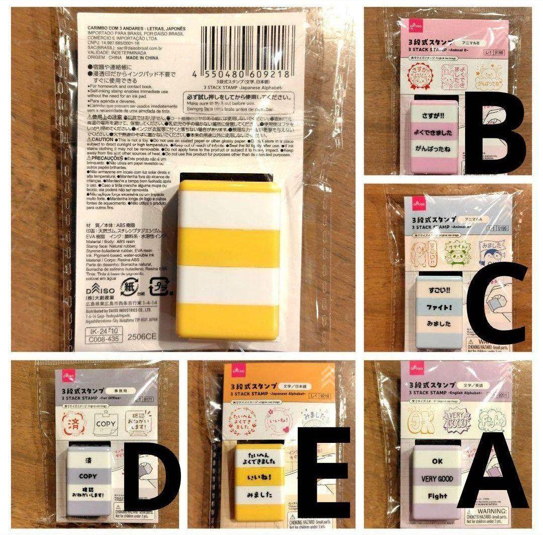 5個ダイソー事務用文字アニマル英語日本語3段式スタンプごほうびスタンプマス目スタンプ6。