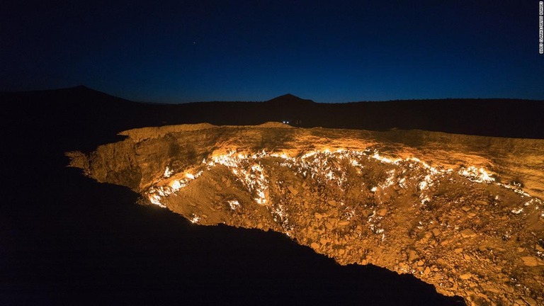 トルクメニスタンの神秘「地獄の門」、燃え続ける炎は消えるのか 1 3- CNN.co.jp。