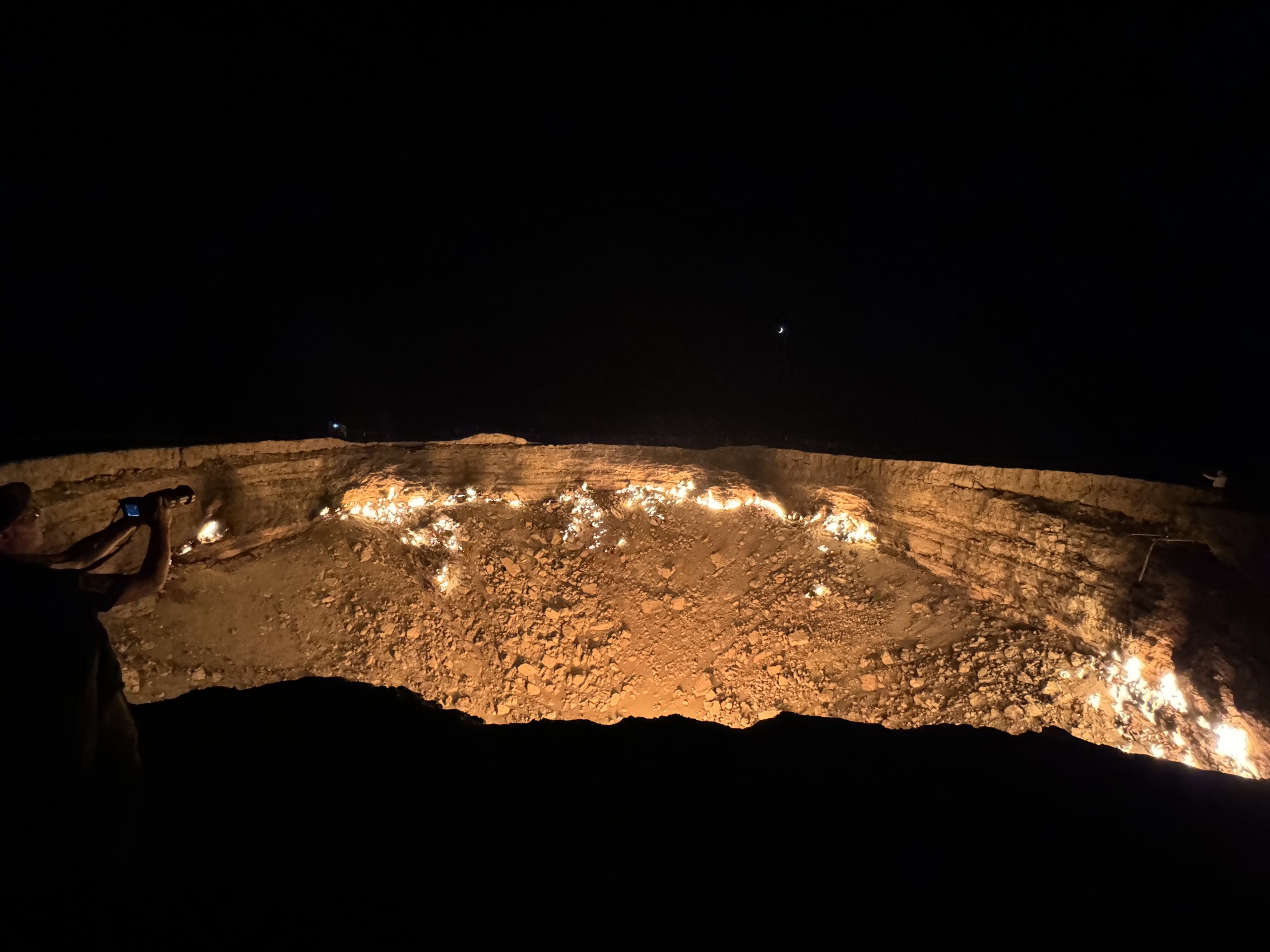 ついに念願の場所へ!HERE WE ARE! at the place we’ve been longing to visit!!!!,50年以上ずーっと燃え続けている謎の穴、ダルヴァザの地獄の門!!!, トルクメニスタンに来た目的は、ここでした🥹✨, どんな場所なのか?,なぜ燃え続けているのか?It’s a mystery!,。