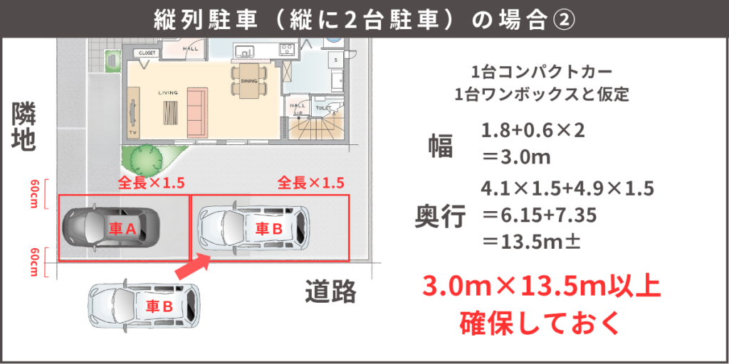 駐車場寸法は、1台あたり2.7m×5.5mは必須!?建物位置をズラしてでも確保すべき理由も解説庭ファン。
