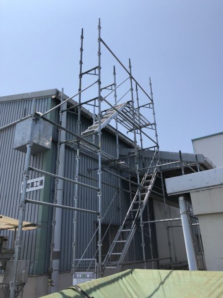 ビルに外部階段塗装工事用の足場設置 東京都墨田区お知らせブログ求人募集 千葉で鳶職人を目指すなら山武郡の鵜澤仮設株式会社へ足場工事。