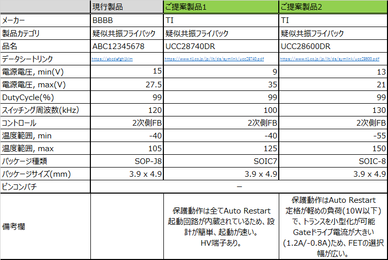 Texas Instruments製品比較表作成サービス - Texas Instruments - マクニカ。