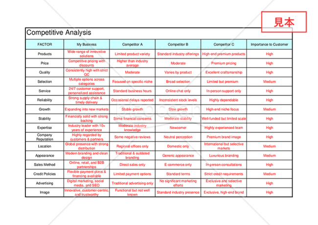 競合他社比較表の書式テンプレート Word・ワードテンプレート・フリーBiz。