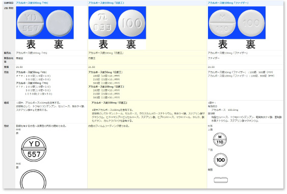 検索結果から複数の薬剤を選択し、任意の項目で比較表を作成日本ユースウェアシステム株式会社。