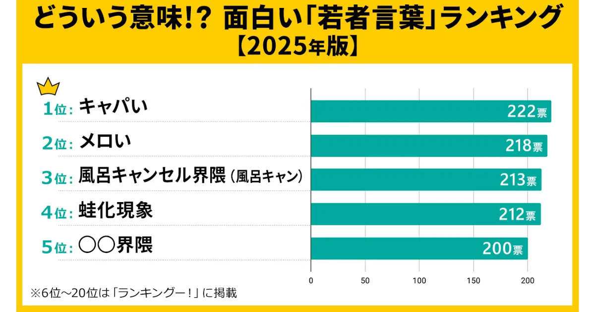 面白い「若者言葉」ランキング1位「キャパい」2位は「メロい」 ランキングー!調査 :MarkeZine マーケジン。