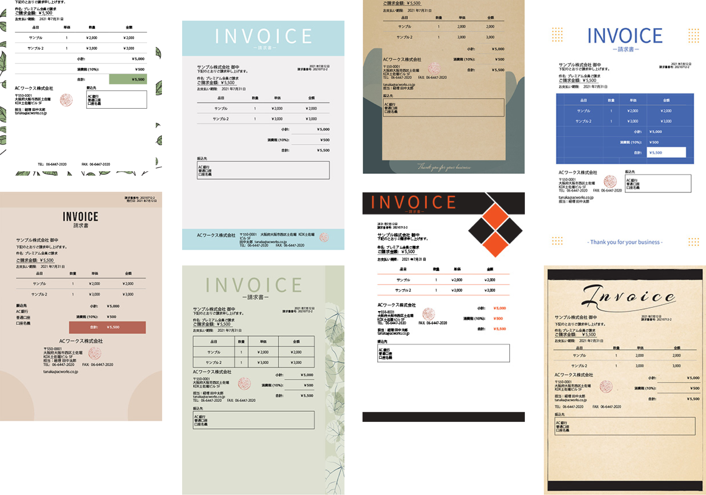 おしゃれな請求書の無料請求書テンプレート 4992 - デザインAC。