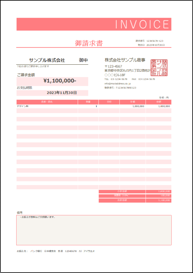 登録不要・無料で使える請求書エクセルテンプレート サンプル 、作成・書き方。