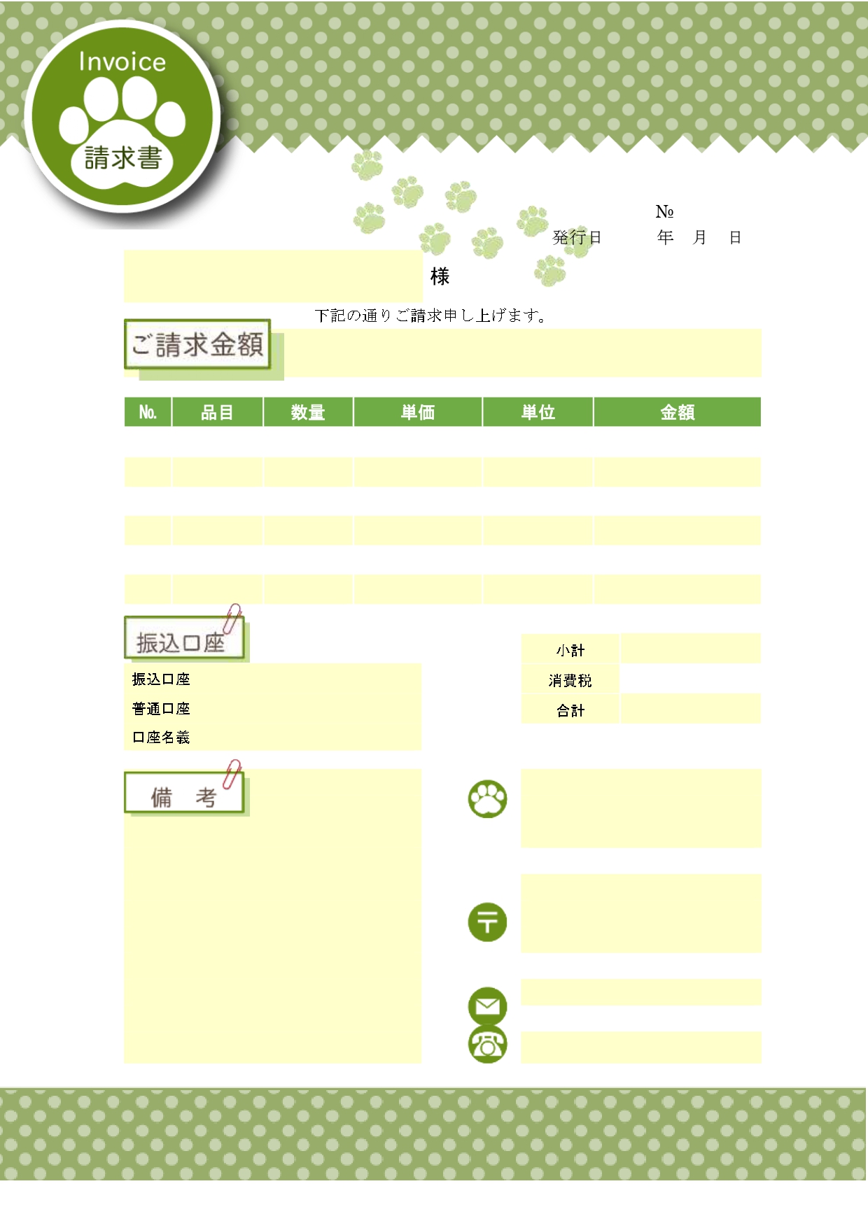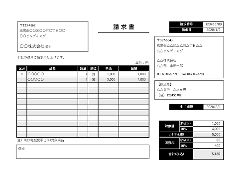 複数税率にも対応「pdf・word・Excel」請求書💗無料ダウンロード「かわいい」雛形・テンプレート素材。