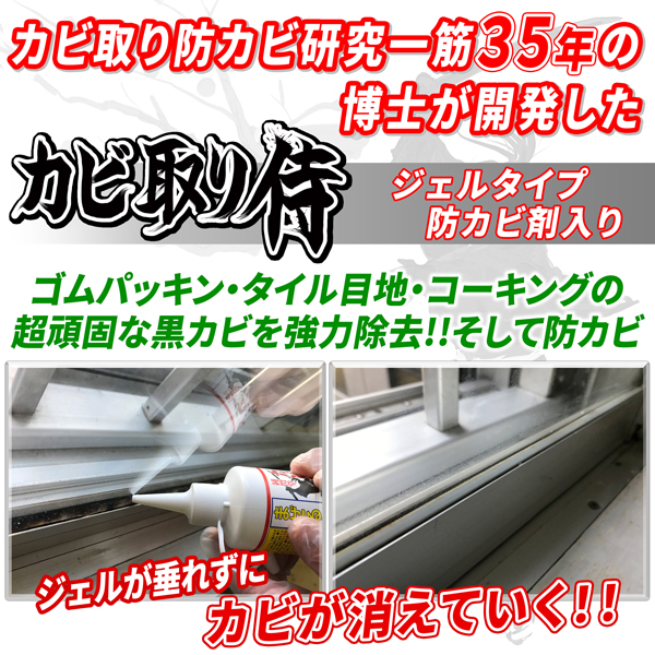 楽天市場 カビ カビ取り カビ取り侍 ジェルタイプ 200gカビ取りジェルでお風呂の壁や天井のゴムパッキン・コーキング、浴室のタイル目地、窓サッシのパッキンに生えた黒カビ 赤カビを強力に除去する業務用クラスのカビ取り剤 簡単に掃除ができる洗剤クリーナー KZ。