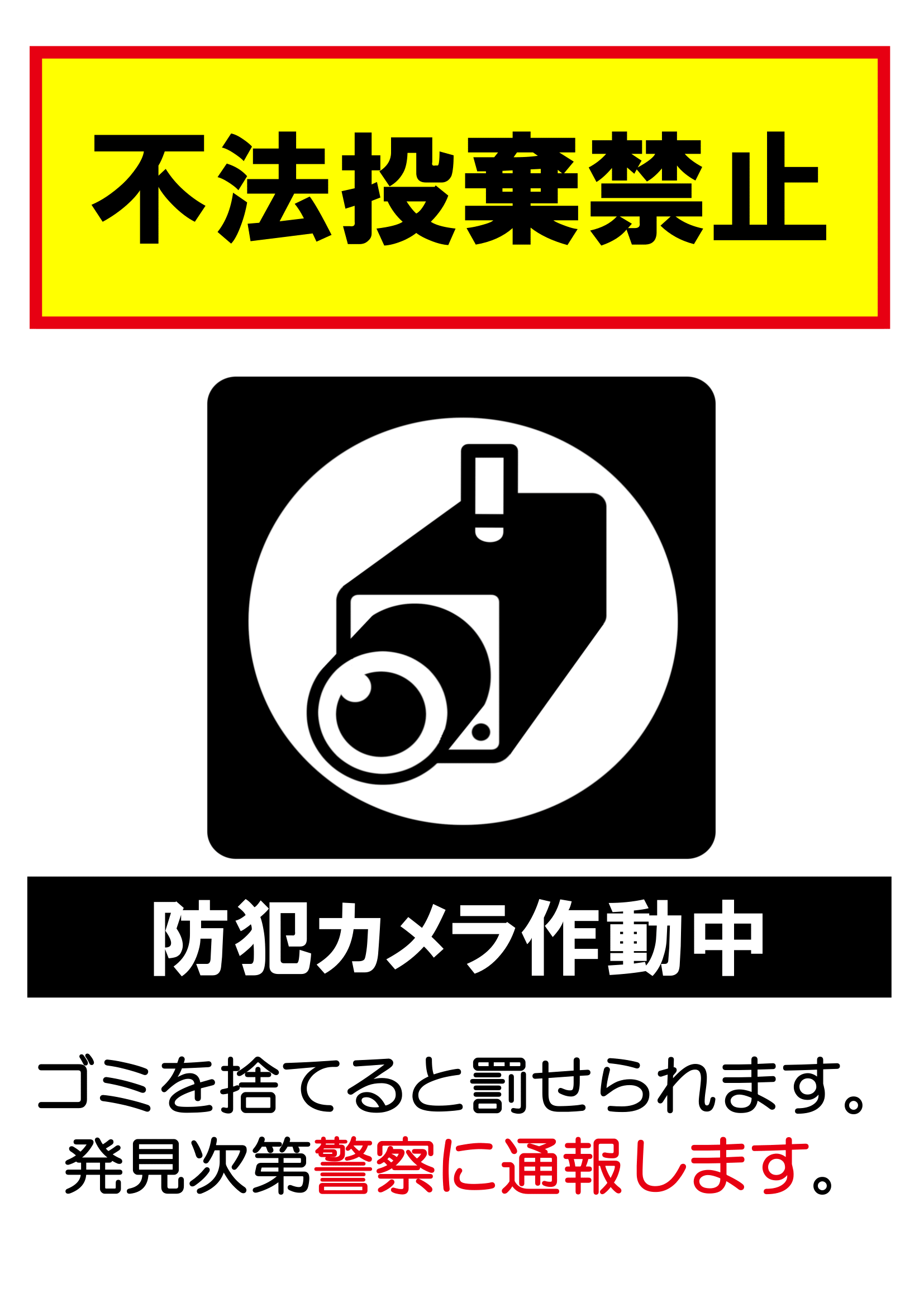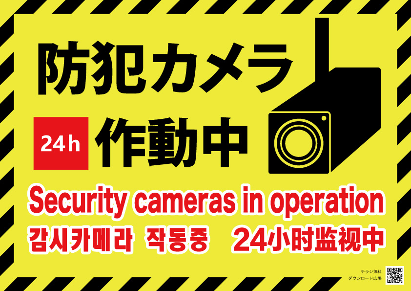 防犯カメラでセキュリティーを向上させる注意貼り紙テンプレート無料・商用可能 注意書き・張り紙テンプレート ポスター対応。