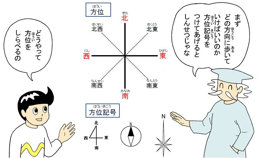 東西南北の英語の覚え方東西南北マークもわかる方法4パターン。読み方 カタカナで 、略も一覧で紹介 - のびのび館 -茨城県守谷市で英会話・自立学習・知育教育・インド算数・速読聴など豊かな人間力を養う教室。